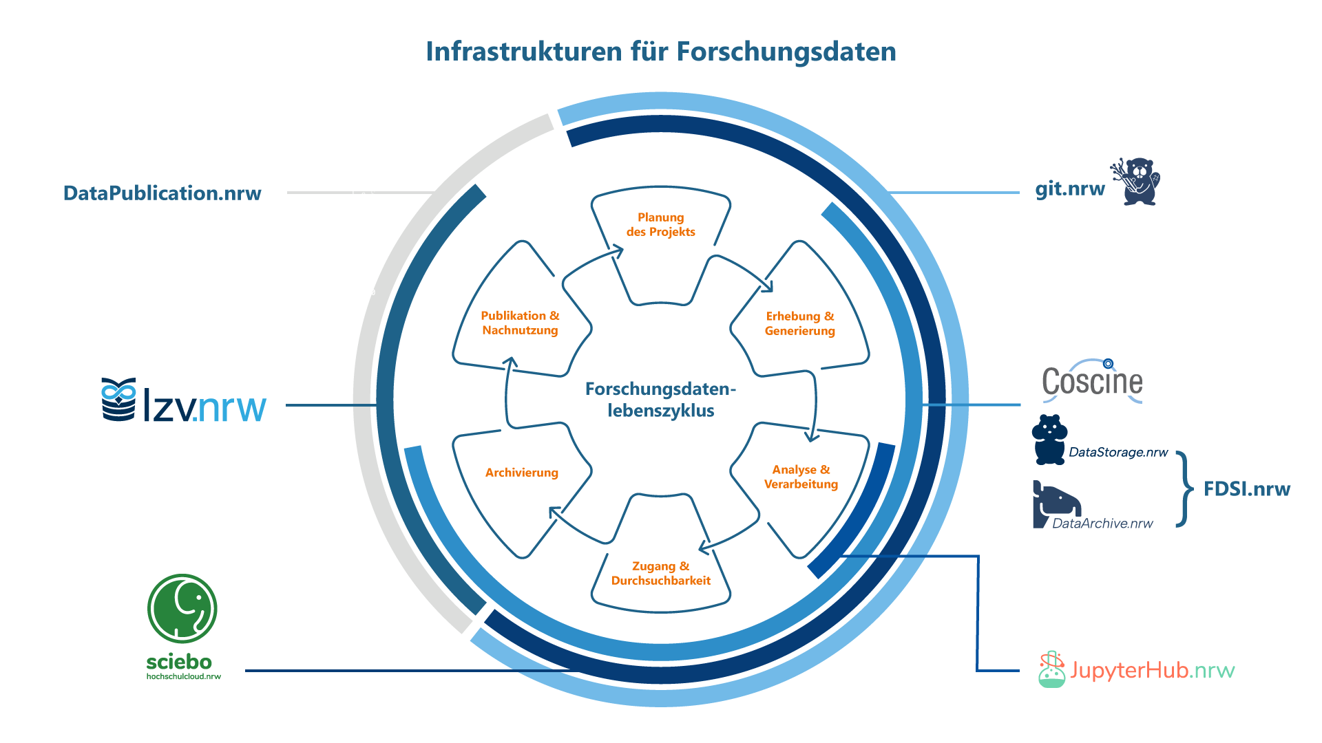 Abbildung: FDM-Landesdienste entlang des Forschungsdatenlebenszyklus